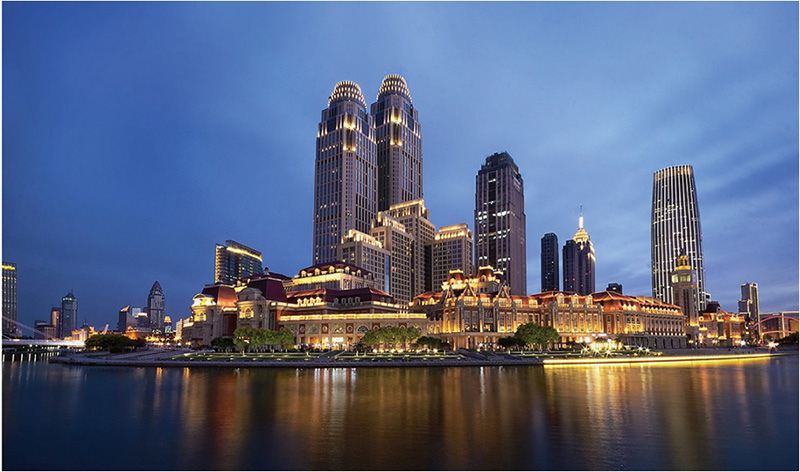 津灣廣場位于天津市和平區的一處海河河灣南岸,為緊鄰海河、面向天津站的歐式建筑群。建筑面積17.1萬平米,由5座歐式風格的地上商業建筑及地下商業街、停車場共同構成。其建筑風格與周邊原租界內的歷史建筑一致,為天津金融城的標志性區域。