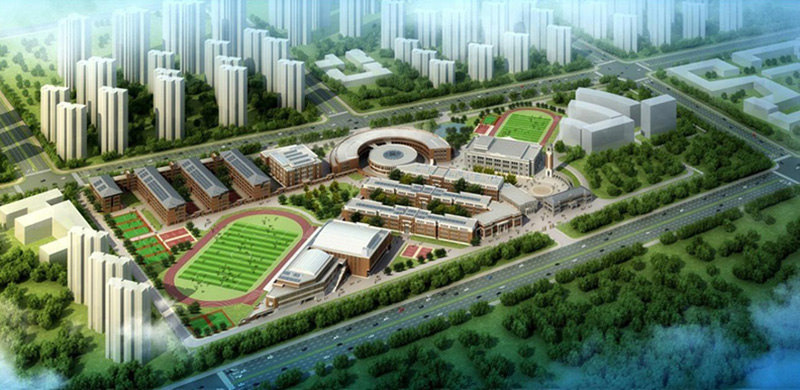 天津生態城中部片區、中天大道與中泰大道交口南側,四至范圍:東至中央大道,南至規劃居住用地,西至中天大道,北至中泰大道??偨ㄖ娣e18.75萬平米,其中地上16.32萬平米,地下2.43萬平米??傆玫孛娣e20.4萬平米。包括:校史館、禮堂、科技藝術樓、圖書館、實驗樓、行政樓、教學樓、辦公樓、體育館、網球館、學生食堂、服務中心、學生宿舍、教師宿舍、地下車庫、其他連廊及室外部分等。